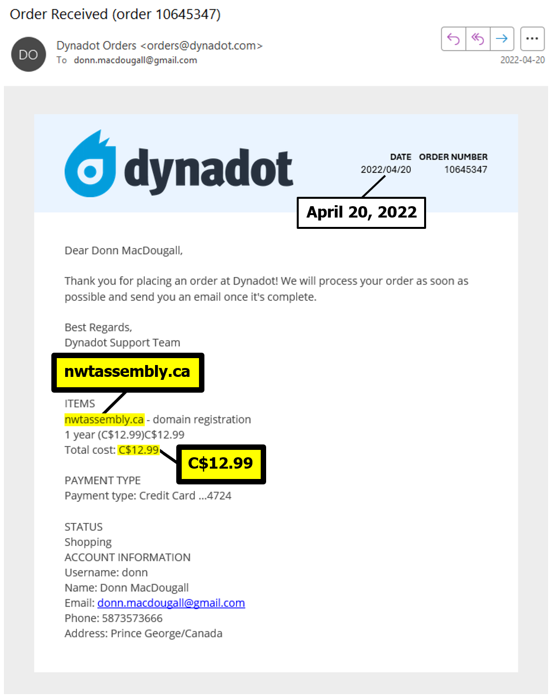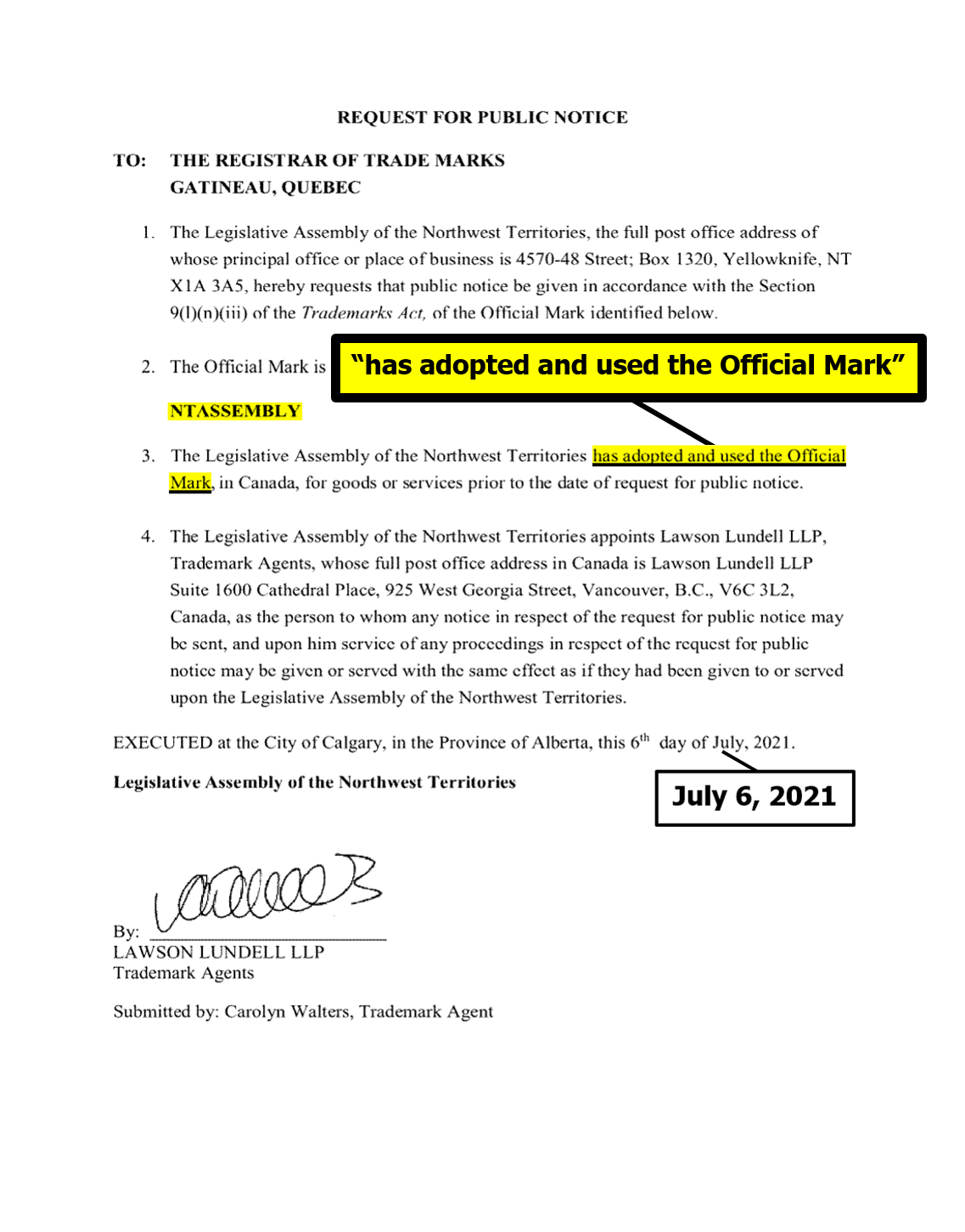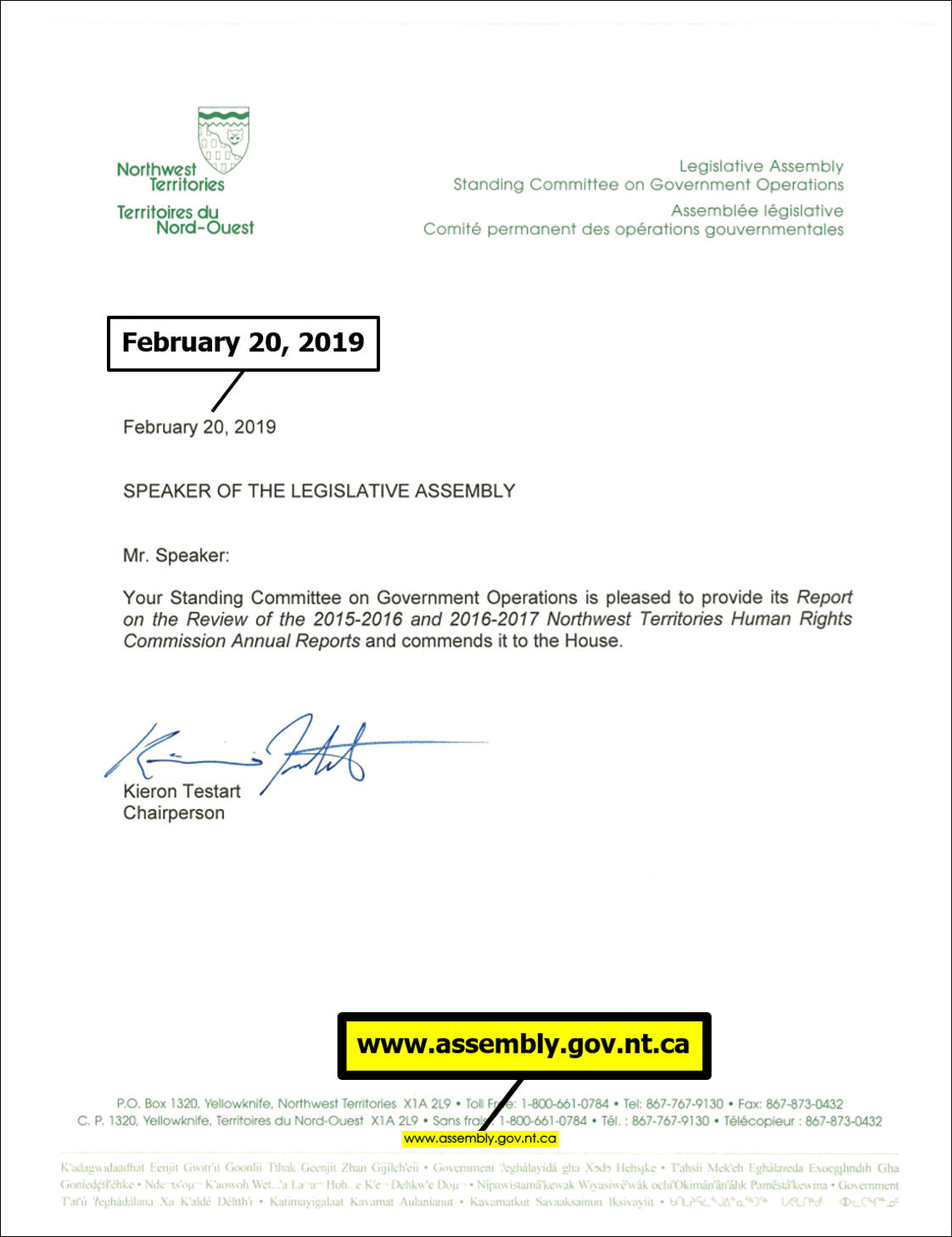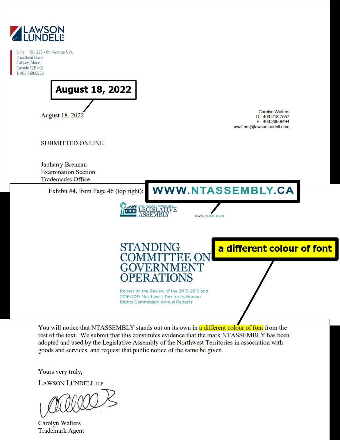 "the NTLA owns the domain name www.ntassembly.ca" is FALSE: